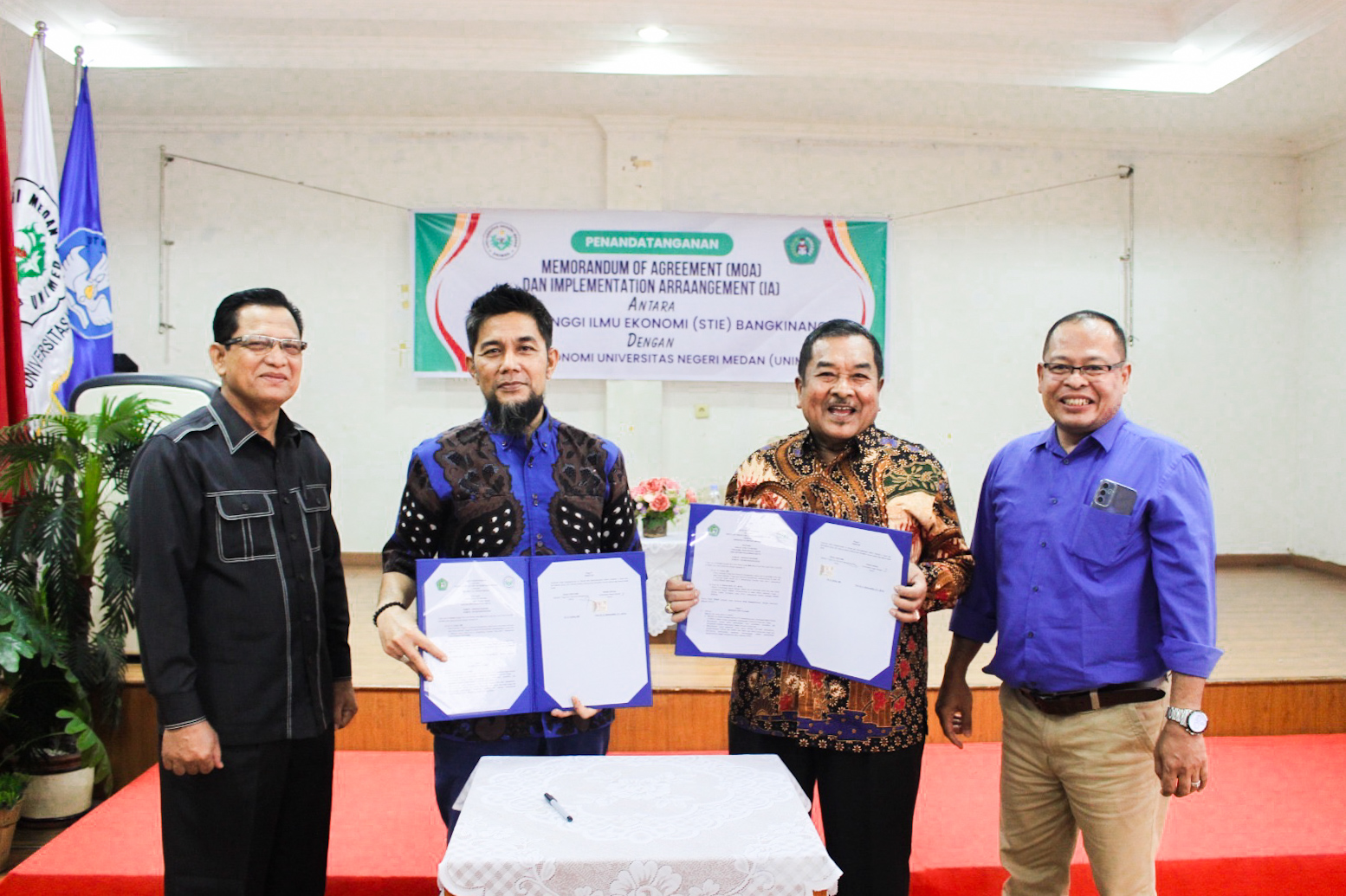 Bertempat di Fakultas Ekonomi Universitas Negeri Medan, STIE Bangkinang tandatangani Memorandum of Agreement (MoA) dan Implementasi Agreement (AI) dalam pengembangan kapasitas kelembagaan, peningkatan sumber daya manusia dan tri darma perguruan tinggi dengan Fakultas Ekonomi Unimed, Kamis (15/5).