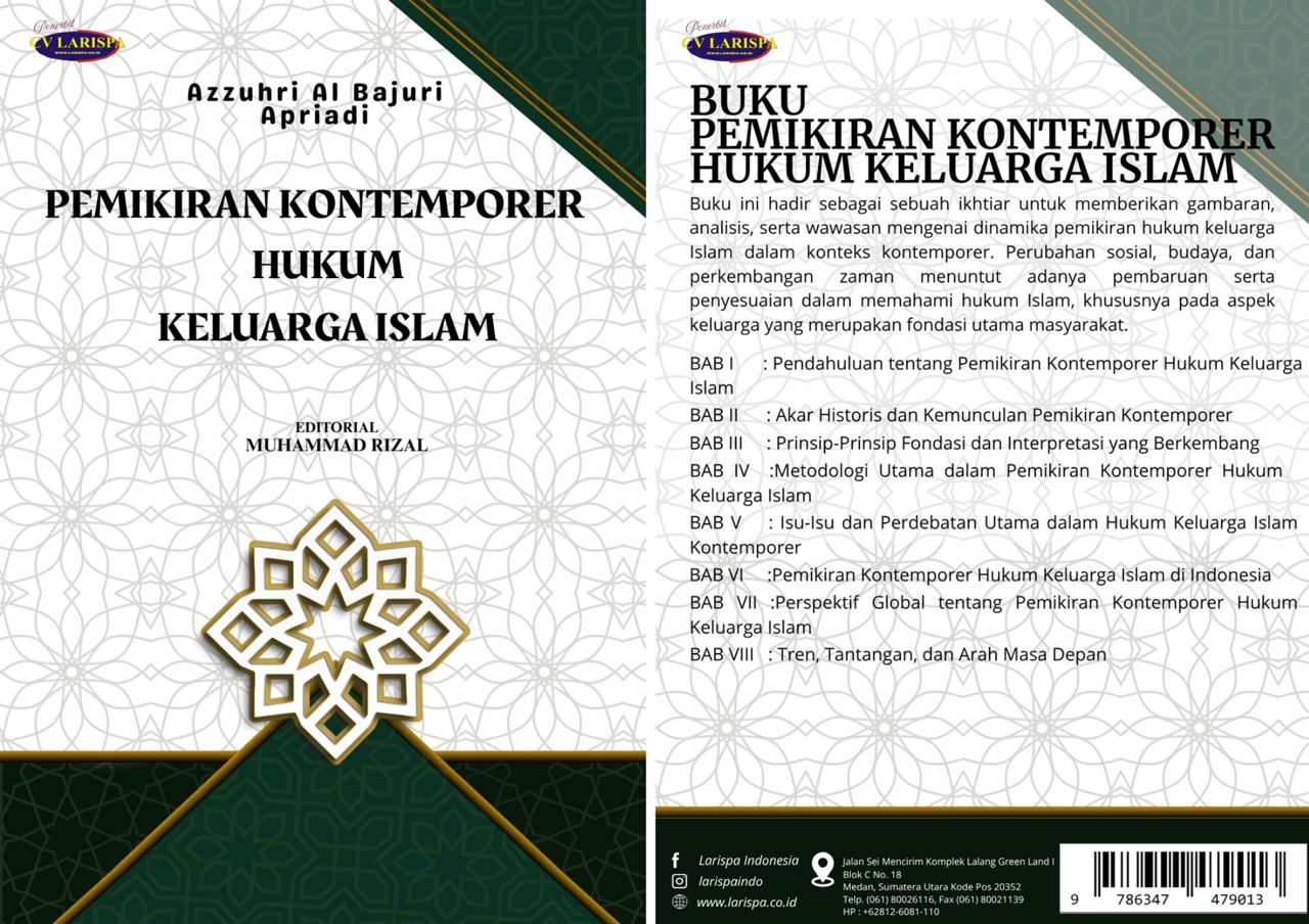 Buku “Pemikiran Kontemporer Hukum Keluarga Islam” karya Azzuhri Al Bajuri dan Apriadi, dengan editorial Muhammad Rizal, kini resmi diterbitkan oleh Penerbit LARISPA.