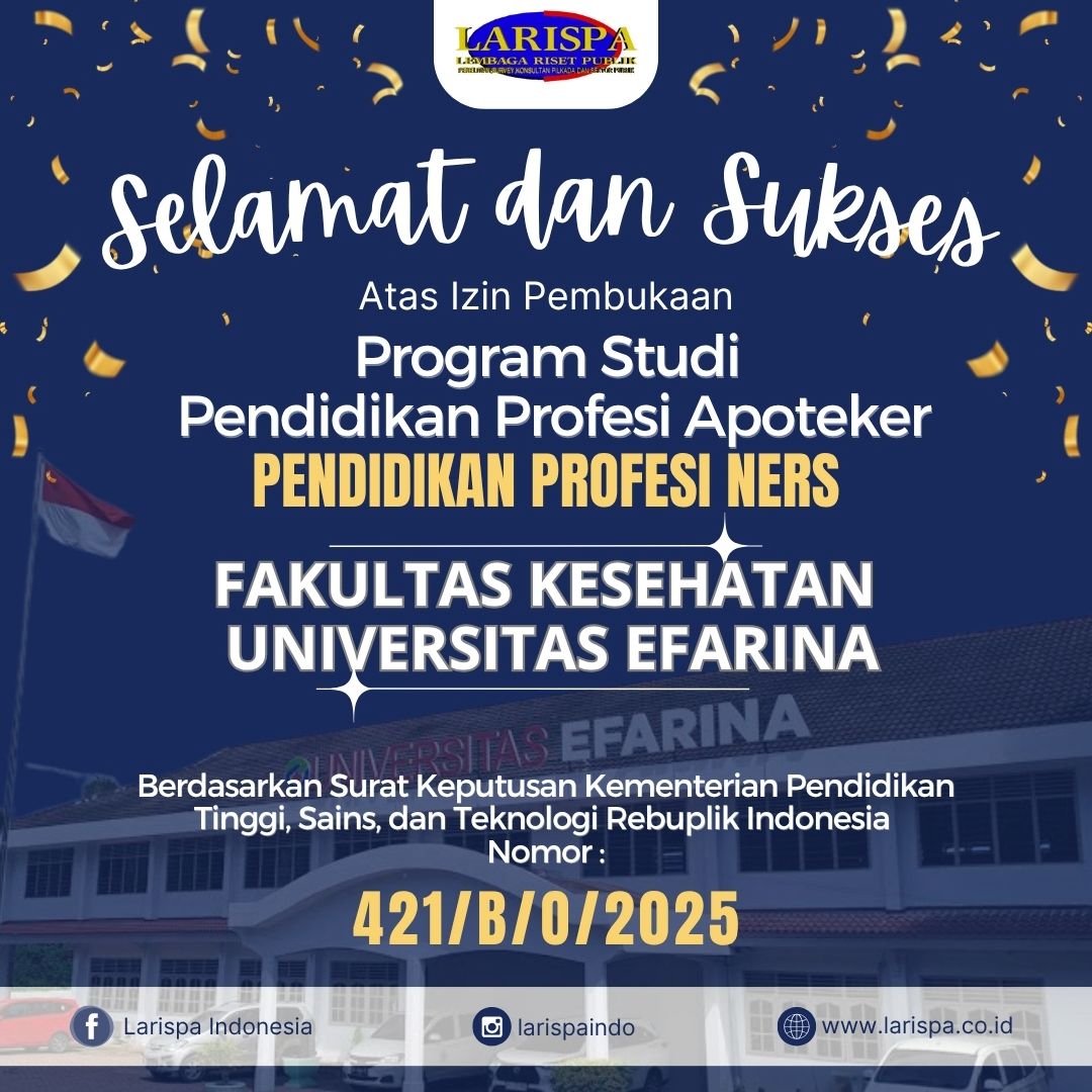 “Selamat dan Sukses kepada Universitas Efarina atas diraihnya Izin Pembukaan Program Studi Pendidikan Profesi Apoteker dan Ners! Semoga pencapaian ini membawa keberkahan dan kemajuan bagi institusi, serta meningkatkan kualitas pendidikan dan pelayanan kesehatan di masyarakat.”